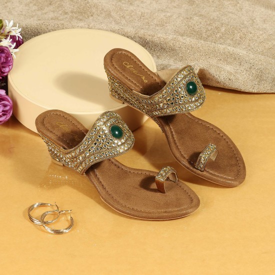 Women Antic-gold Ethnic Slip Ons / Antic-gold