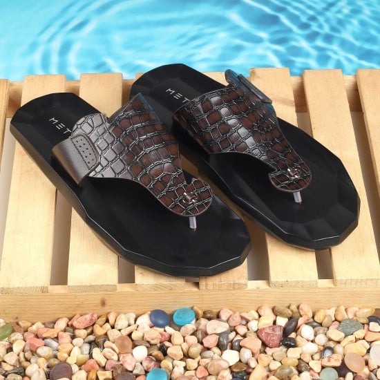 Metro Men Brown Casual Slippers