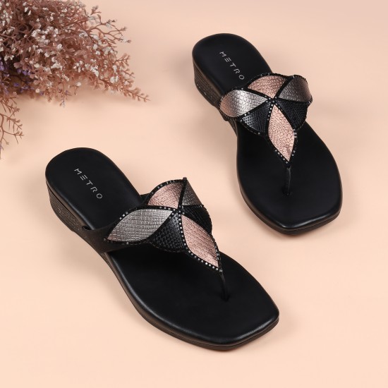 Metro Women Black Casual Slippers