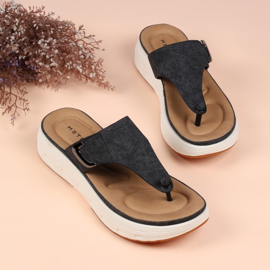 Metro Women Black Casual Slippers