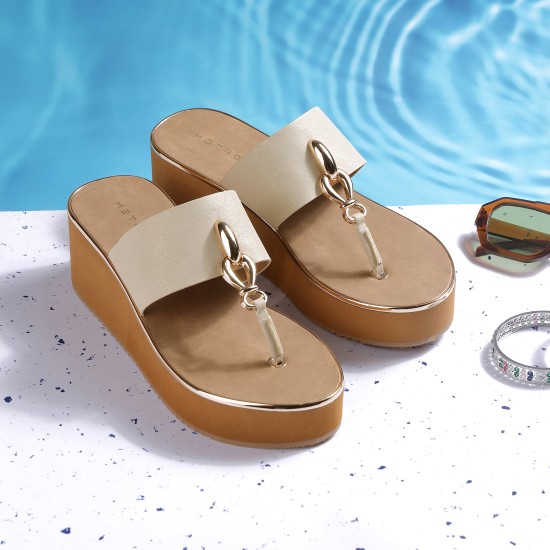 Metro Women Gold Casual Slip Ons