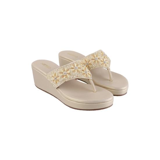 Metro Women Gold Ethnic Slip Ons