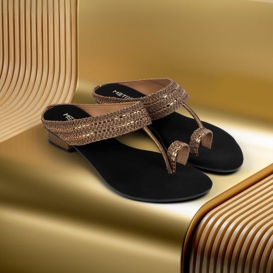 Women Antic-gold Ethnic Slip Ons / Antic-gold