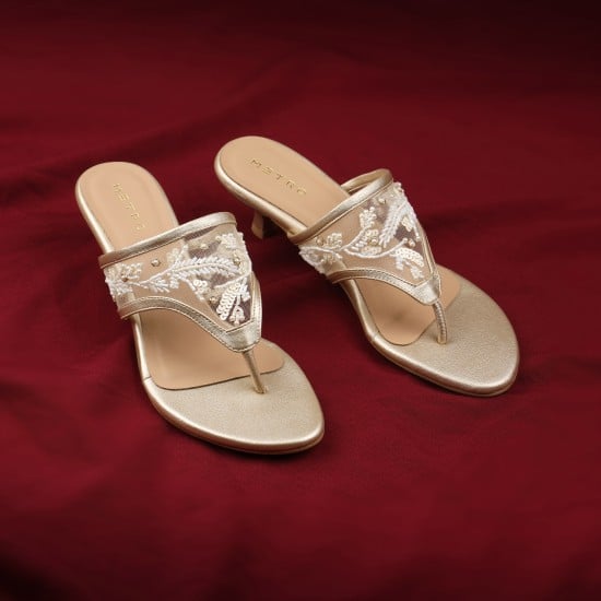 Metro Women Gold Ethnic Slip Ons