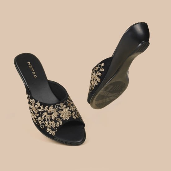 Metro Women Black Ethnic Slip Ons