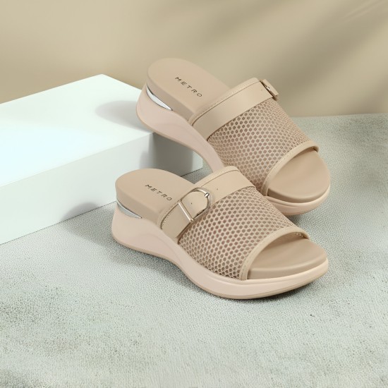 Metro Women Beige Casual Slip Ons