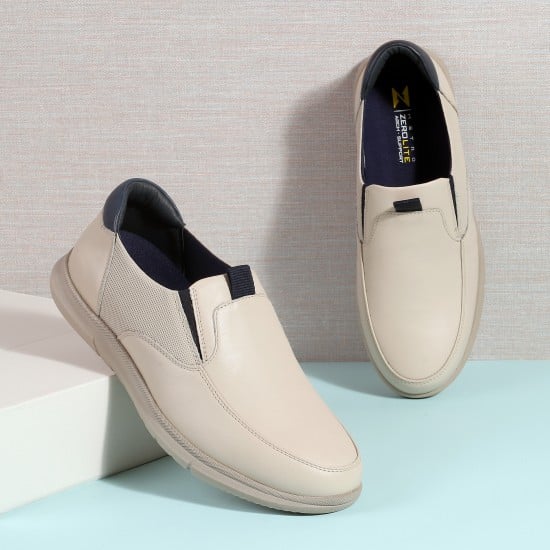 Metro Men Beige Casual Slip Ons